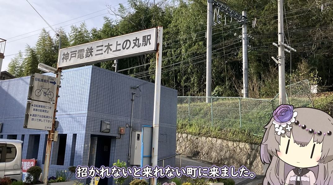 神戸電鉄の三木上の丸(みきうえのまる)駅を出て線路沿いに進むと巨大な看板を発見。