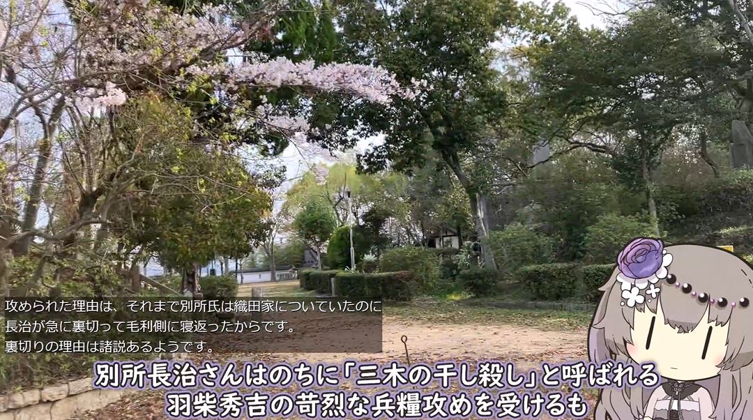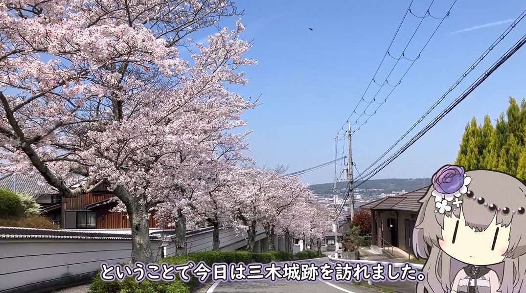 今回紹介したいのは、ニコニコ動画に投稿された『【城郭登城祭第三陣】ちょこっと街角探訪 三木城跡と桜並木の坂道【VOICEVOX冥鳴ひまり】』というおばあちゃんさんの動画です。