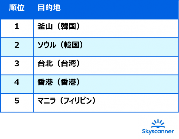 「ゴールデンウィークにおすすめのオトクな海外旅行先5選」を発表! グローバル旅行アプリ「スカイスキャナー」によると、釜山やソウルなど日本近郊が上位に