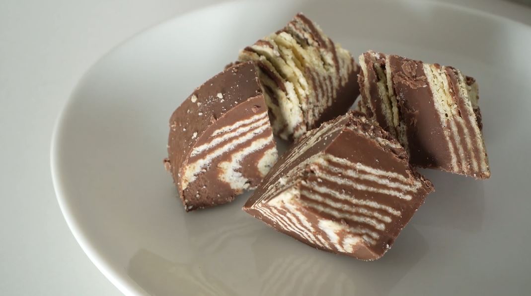 カットした断面はとても綺麗。美しい層になっていますし、何度もトントンしただけにチョコレートが隙間なく詰まっています。