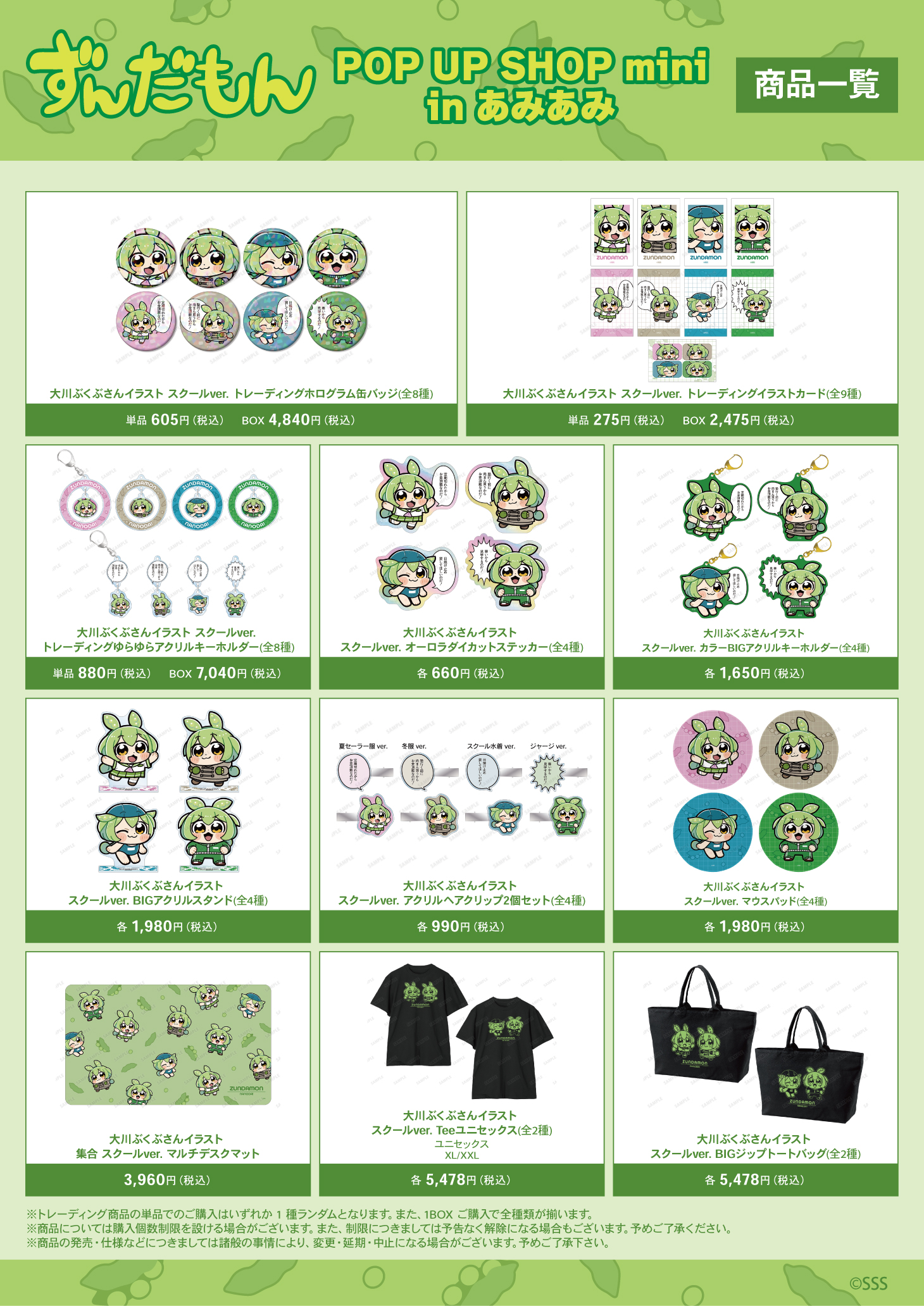 『ずんだもん POP UP SHOP mini in あみあみ』が開催。大川ぶくぶ先生による新規描き起こしイラストを使用した新商品を販売。